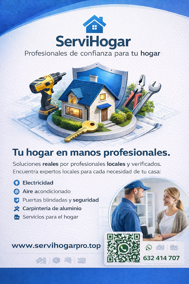 Sin intermediarios. Sin comisiones ocultas. Sin historias raras. 🚪 Puertas Blindadas · ❄️ Climatización · ⚡ Electricidad · 🪟 Carpintería · y mucho más.